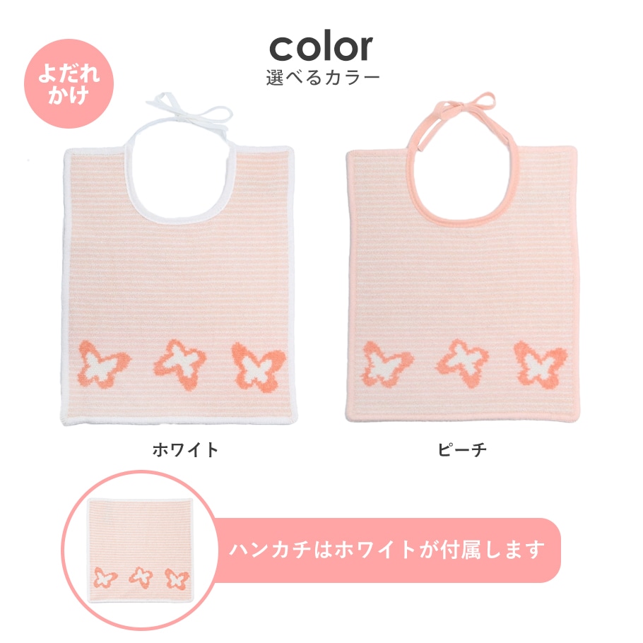 ビブ:ピーチ ハンカチ:ホワイト