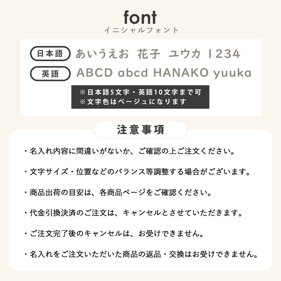 それぞれ右下にお名前刺しゅうを施します。